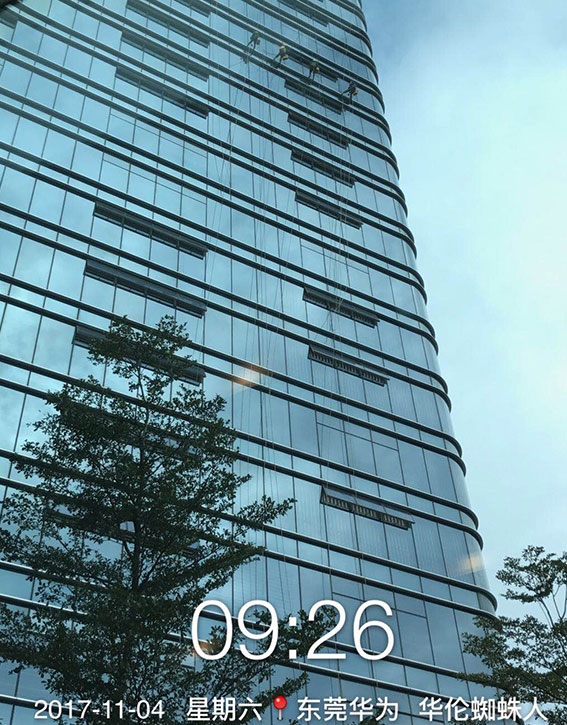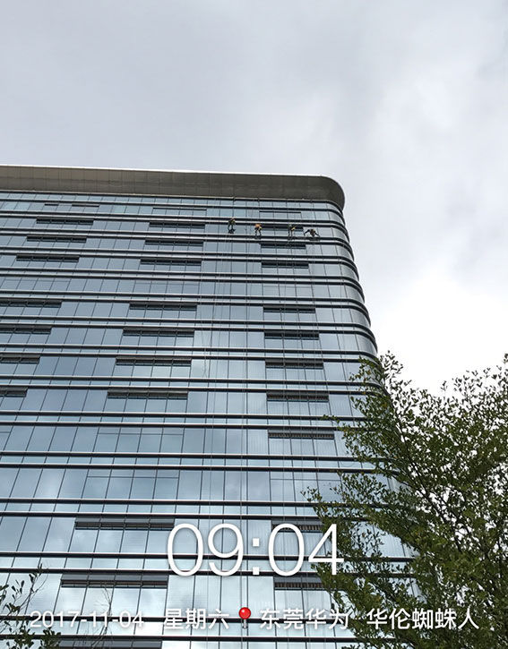 項目簡介:東莞華為坐落于東莞松山湖,占地面積大,地面積為126 .7公頃(1900畝),分為4個地塊,面積分別為6 .05公頃、38 .39公頃、21 .88公頃和60.34公頃。該區域為松山湖核心區,占據松山湖最好的生態景觀資源,華為終端總部大片區域倚靠在松木山水庫邊,旁邊即為松山湖精華景區松湖花海,周邊皆為東莞頂級豪宅區。接到這個中國知名企業的工程,預估外墻清洗面積為20萬平方。